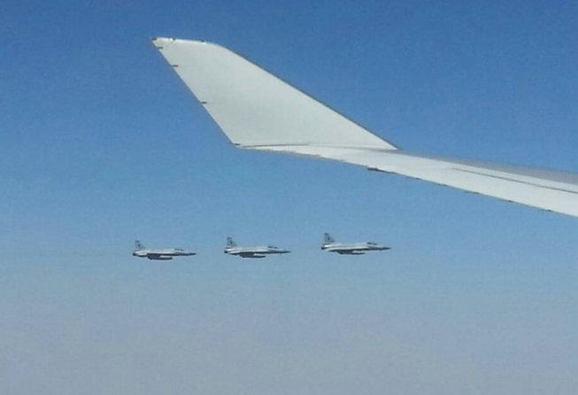 訪(fǎng)問(wèn)巴基斯坦的中國總理李克強乘坐的專(zhuān)機22日進(jìn)入巴領(lǐng)空后,巴空軍派出6架“梟龍”戰機進(jìn)行了編隊護航。在很多情況下,為到訪(fǎng)專(zhuān)機護航有著(zhù)很現實(shí)的安全需求。不過(guò),對大多數國家而言,在和平時(shí)期派出戰斗機為外國首腦專(zhuān)機護航,則更多是一種禮遇,而護航戰機的數量體現著(zhù)兩國關(guān)系的親密程度。