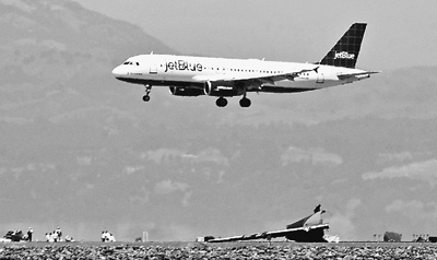 7月9日,一架美國捷藍航空公司客機準備降落在美國舊金山國際機場(chǎng)。截至當日,舊金山國際機場(chǎng)已逐步恢復正常運營(yíng)。新華社發(fā)