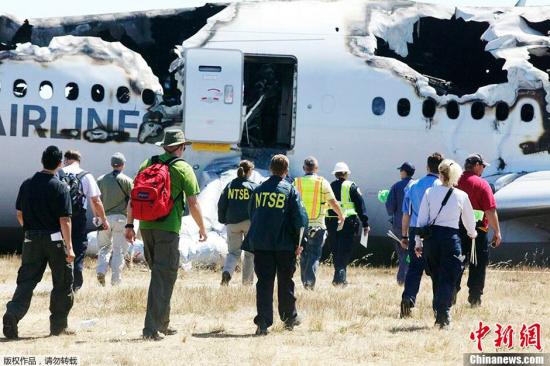 當地時(shí)間7月7日,美國國家運輸安全委員會(huì )(NTSB)在韓亞航空214航班墜機現場(chǎng)開(kāi)展調查工作。