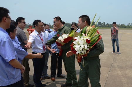 本次高溫高濕試飛工作得到了中航工業(yè)長(cháng)飛公司的大力協(xié)助,長(cháng)飛公司董事長(cháng)王文飛等親自前往機場(chǎng)接機。