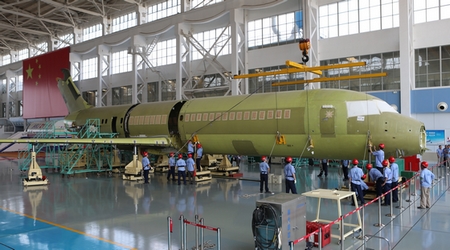 ARJ21-700飛機107架機進(jìn)入全機對接