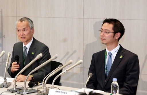 春秋航空日本分公司總經(jīng)理鵜飼博(左)5日在東京出席記者會(huì )
