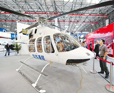 5日,觀(guān)眾參觀(guān)美國貝爾407直升機。