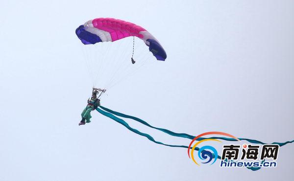 跳傘隊員們從天而降(南海網(wǎng)記者張茂攝)