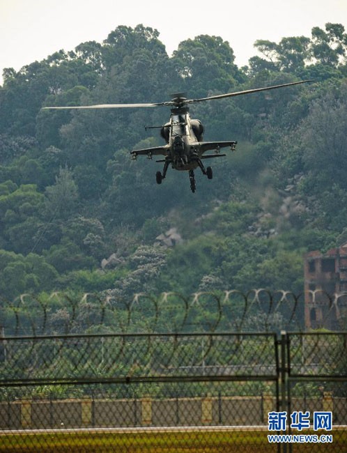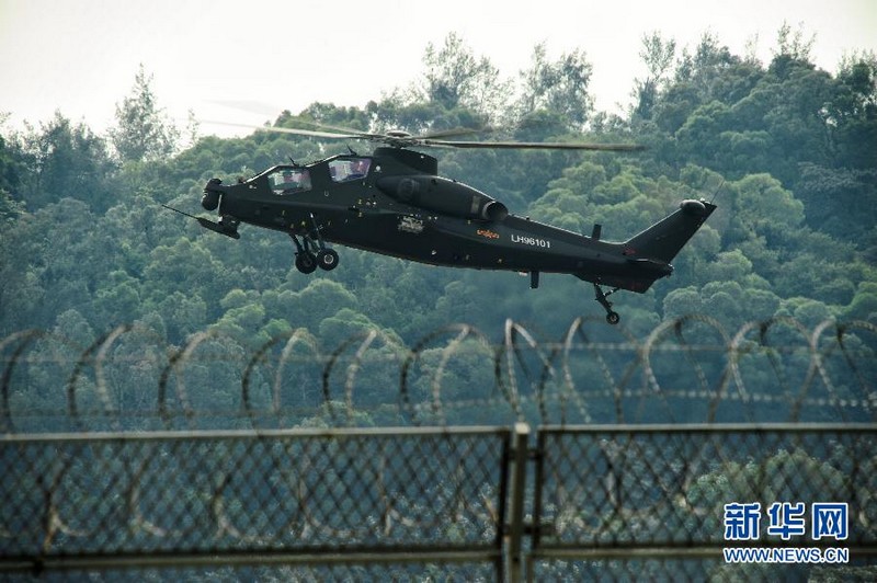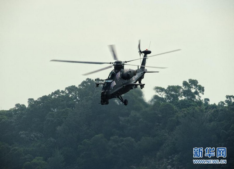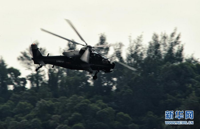 2012年11月11日,國產(chǎn)武直10武裝直升機在珠海三灶機場(chǎng)進(jìn)行飛行訓練。當日,我國自主研制生產(chǎn)的武直10武裝直升機在珠海三灶機場(chǎng)進(jìn)行了約20分鐘的適應性飛行訓練,做出倒飛、萊維斯曼機動(dòng)、高速大角度俯沖、低空小半徑盤(pán)旋等動(dòng)作,展現出其優(yōu)異性能,引來(lái)航展現場(chǎng)觀(guān)眾頻頻喝彩。楊光 攝 圖片來(lái)源:新華網(wǎng)
