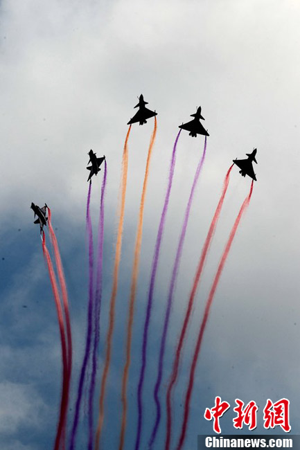 2012年11月10日,廣東省珠海市,八一飛行表演隊殲十戰機做編隊飛行練習。八一飛行表演隊將在珠海航展上做精彩編隊飛行表演。