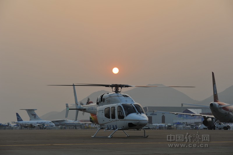 中國經(jīng)濟網(wǎng)珠海航展特派記者團記者王飛 11月15日報道 金匯通航貝爾直升機在珠海航展上做展示飛行。