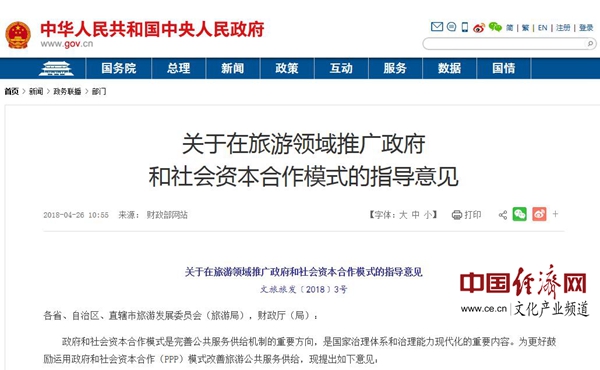 關(guān)于在旅游領(lǐng)域推廣政府和社會(huì )資本合作模式的指導意見(jiàn)