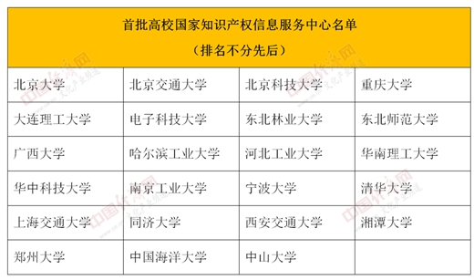 據中國經(jīng)濟網(wǎng)文化產(chǎn)業(yè)頻道記者了解,2019年3月7日,經(jīng)國家知識產(chǎn)權局辦公室聯(lián)合國家教育部辦公廳公布,北京大學(xué)等23家高校已入選“首批高校國家知識產(chǎn)權信息服務(wù)中心”名單。隨著(zhù)第二批37家高校的入選,“高校國家知識產(chǎn)權信息服務(wù)中心”總體數量增至60家。