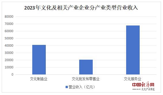 分產(chǎn)業(yè)類(lèi)型看,文化制造業(yè)實(shí)現營(yíng)業(yè)收入40962億元,比上年增長(cháng)0.6%;文化批發(fā)和零售業(yè)20814億元,增長(cháng)6.1%;文化服務(wù)業(yè)67739億元,增長(cháng)14.1%。