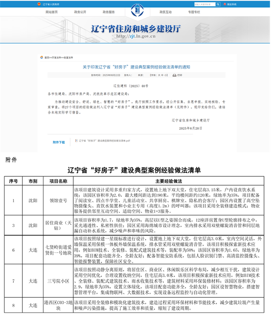 遼寧省“好房子”建設典型案例經(jīng)驗做法清單 網(wǎng)絡(luò )截圖