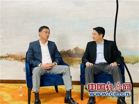 圖為國藥器械總經(jīng)理李楊(左)和GE醫療中國總裁兼CEO張軼昊接受經(jīng)濟日報-中國經(jīng)濟網(wǎng)記者采訪(fǎng)