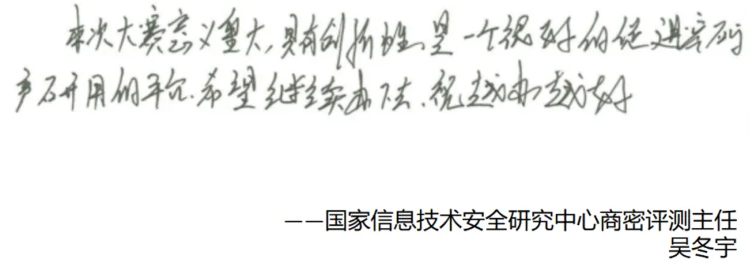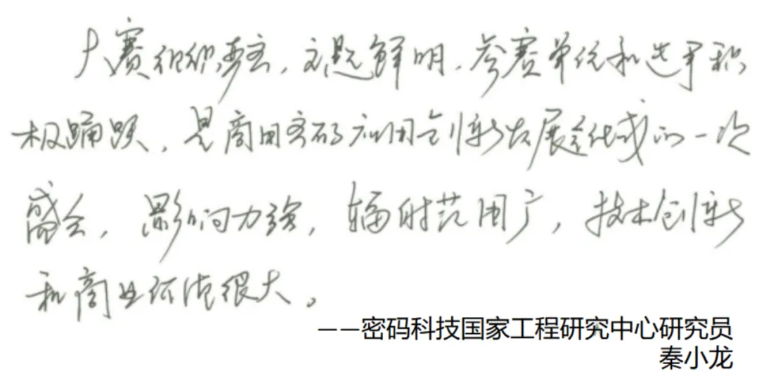 賽后,密碼科技國家工程研究中心研究員秦小龍、中國電力科學(xué)研究院高級工程師李智虎、中國科學(xué)院大學(xué)網(wǎng)絡(luò )空間安全學(xué)院教授/博導王躍武、國家信息技術(shù)安全研究中心商密評測主任吳冬宇等多位專(zhuān)家評委給大賽提出了寶貴的建議和意見(jiàn)。