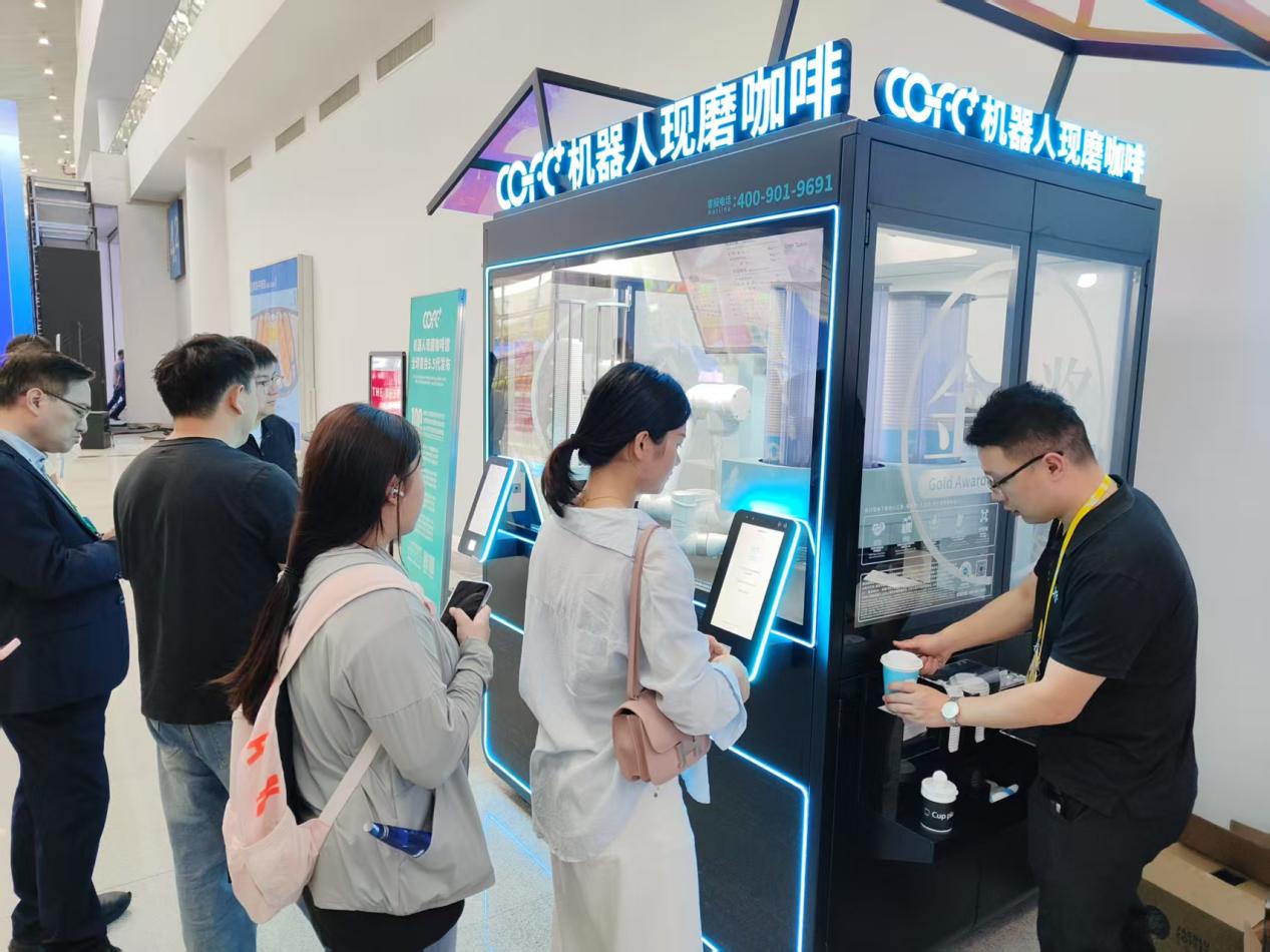 機器人現磨咖啡約50秒即可制作完成,成為現場(chǎng)的餐飲“打卡點(diǎn)”。 中國經(jīng)濟網(wǎng)記者梁木攝