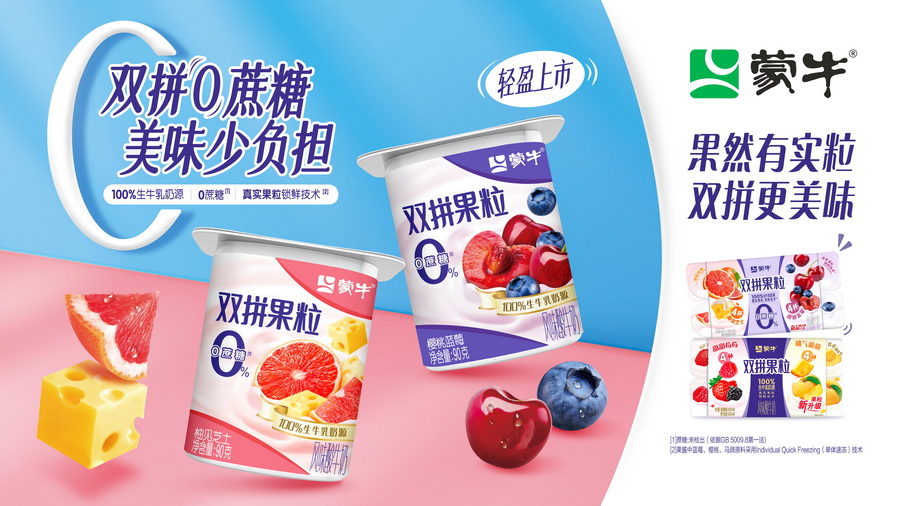 面對消費者對營(yíng)養需求的不斷提升,蒙牛低溫酸奶全線(xiàn)升級100%生牛乳配方,提質(zhì)不提價(jià)。其中,蒙牛0醇酸奶積極布局0蔗糖賽道,0蔗糖輕負擔;蒙牛雙拼果粒輕盈上市。精準的產(chǎn)品定位和群體聚焦實(shí)現兩個(gè)細分賽道高增。乘奧運東風(fēng),蒙牛開(kāi)展“品質(zhì)升級 冠軍之選”奧運主題營(yíng)銷(xiāo),以定制包裝、主題物料、終端推廣等多種營(yíng)銷(xiāo)方式,為消費者提供更多營(yíng)養美味和互動(dòng)體驗。