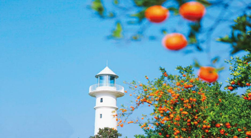 萬(wàn)州小桔燈生態(tài)文化旅游區的燈塔和紅桔(重慶水利局供圖)