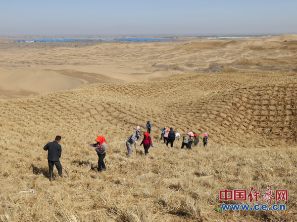 中衛騰格里沙漠腹地治沙現場(chǎng) 中國經(jīng)濟網(wǎng)記者裴小閣/攝