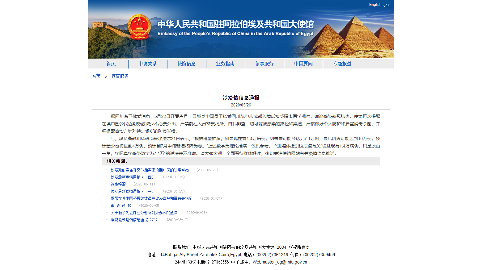 經(jīng)濟日報-中國經(jīng)濟網(wǎng)5月28日訊(記者朱國旺 郭文培)5月26日,中華人民共和國駐阿拉伯埃及共和國大使館官網(wǎng)發(fā)布《涉疫情信息通報》稱(chēng),個(gè)別媒體報道有關(guān)“埃及現有1.4萬(wàn)病例,只是冰山一角,實(shí)際真實(shí)感染數字為7.1萬(wàn)”的說(shuō)法并不準確。