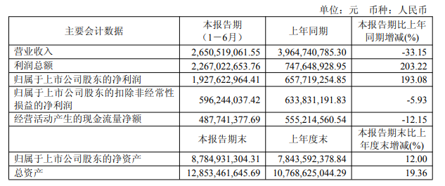 中國經(jīng)濟網(wǎng)北京820日訊(記者 郭文培)日前,達仁堂披露2025年半年度報告。報告期內,公司實(shí)現營(yíng)業(yè)收入26.51億元,同比下降33.15%;歸屬于上市公司股東的凈利潤為19.28億元,同比增長(cháng)193.08%。