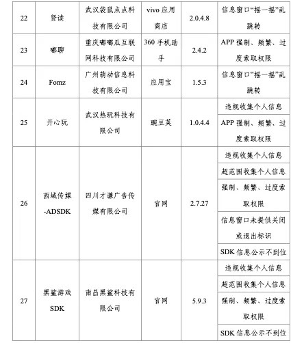 工信部稱(chēng),依據《個(gè)人信息保護法》《網(wǎng)絡(luò )安全法》《電信條例》《電信和互聯(lián)網(wǎng)用戶(hù)個(gè)人信息保護規定》等法律法規,工信部持續整治APP侵害用戶(hù)權益的違規行為,在近期組織的第三方檢測機構進(jìn)行抽查中,共發(fā)現27款APP及SDK存在侵害用戶(hù)權益行為。侵權方式包括信息窗口“搖一搖”亂跳轉或誤導用戶(hù)滑動(dòng)亂跳轉、違規收集個(gè)人信息、APP頻繁自啟動(dòng)和關(guān)聯(lián)啟動(dòng)、信息窗口未提供關(guān)閉或退出標識、強制用戶(hù)使用定向推送功能、SDK信息公示不到位以及強制、頻繁、過(guò)度索取權限等,涉及小米商店語(yǔ)音輸入法、vivo應用商店的聽(tīng)說(shuō)輸入法、App Stroe的樂(lè )播投屏等。