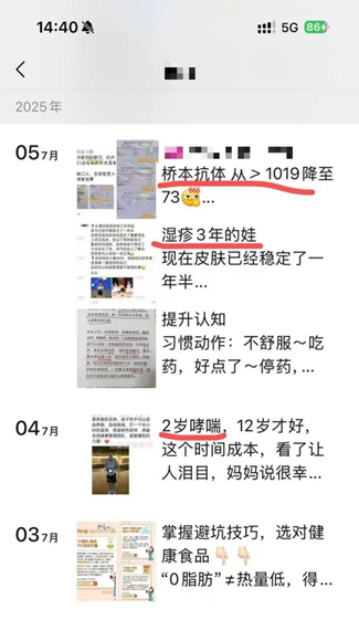 陳女士反映,該“營(yíng)養師”小紅書(shū)賬號已經(jīng)注銷(xiāo),但微信公眾號和朋友圈仍不斷更新,其中有大量服用保健品后的“健康奇跡”。記者調查發(fā)現,該“營(yíng)養師”在各平臺均未展示營(yíng)養師資質(zhì)證明。陳女士表示,她通過(guò)該“營(yíng)養師”的個(gè)人介紹、營(yíng)養健康講座分享和健康群的案例,逐步相信其“營(yíng)養師”專(zhuān)業(yè)能力。