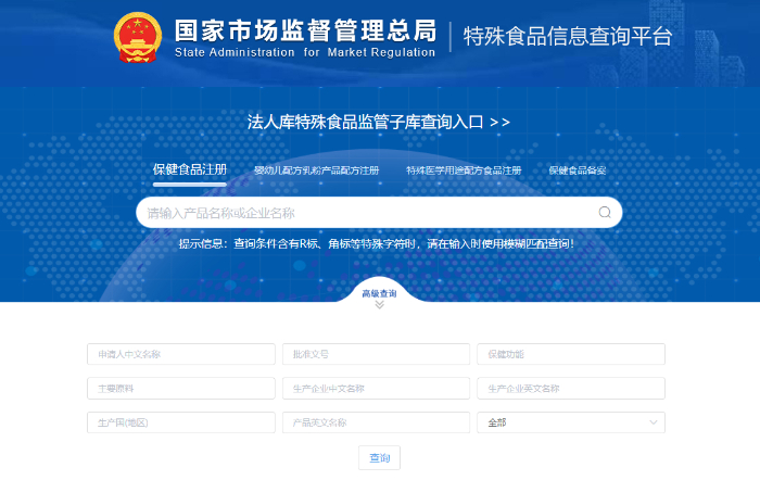 市場(chǎng)監管總局官網(wǎng)特殊食品信息查詢(xún)平臺