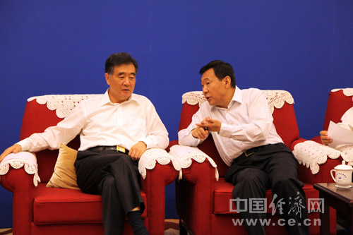 6月17日,以“社會(huì )共治、同心攜手維護食品安全”為主題的2013年全國食品安全宣傳周主場(chǎng)活動(dòng)在北京舉行。國務(wù)院副總理汪洋出席活動(dòng)并講話(huà)。圖為國務(wù)院副總理汪洋與國家食品藥品監督管理總局局長(cháng)張勇交流。 中國經(jīng)濟網(wǎng) 王耀峰/攝