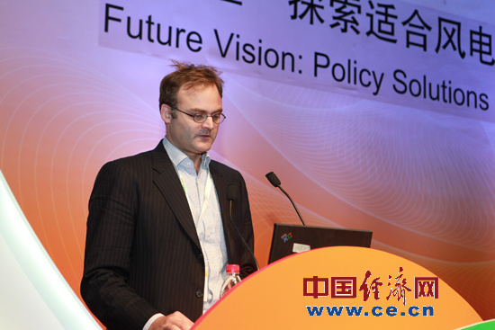 所謂的滲透率和普及率,在全國來(lái)看確實(shí)很低,但我們看一下內蒙古等地區,在國際標準來(lái)看它的滲透率也是很高的,去年內蒙古的風(fēng)電滲透率可以與德國相比,風(fēng)能占總裝機容量的16%。在中國的管理問(wèn)題更加突出,因為理論上講這樣地方的風(fēng)力資源更有優(yōu)勢,在發(fā)展風(fēng)電的時(shí)候要更好地統籌考慮。在內蒙古火電站和風(fēng)場(chǎng)怎樣進(jìn)行統籌考慮,像德國這樣更好的并網(wǎng)。因為德國在并網(wǎng)和利用風(fēng)能方面有更多的經(jīng)驗,德國的一些工作已經(jīng)走在了中國前面,有些事情在德國已經(jīng)順理成章,在中國還沒(méi)有這樣。我們發(fā)現鑒于中國已經(jīng)進(jìn)行的開(kāi)發(fā)活動(dòng),像內蒙古這樣風(fēng)力資源充沛的地方,在近期可能會(huì )成為世界上風(fēng)能普及率最高的地方之一,成為全世界的佼佼者。在內蒙古這樣的地方,占中國總體風(fēng)力市場(chǎng)的35%左右。在這樣的地區市場(chǎng)上,風(fēng)力資源非常充沛,與風(fēng)能相抗的只能是煤電。因此,我們面臨整合的問(wèn)題。也就是怎樣將風(fēng)電和煤電進(jìn)行整合。一般來(lái)說(shuō)煤電占500兆瓦,風(fēng)電也需要有類(lèi)似的裝置,必須保證24小時(shí)都能夠利用風(fēng)能,這樣就可以保證風(fēng)電的供應。如果有400兆瓦的風(fēng)機容量得到安裝,并進(jìn)行有效運作,確實(shí)可以解決相關(guān)問(wèn)題。