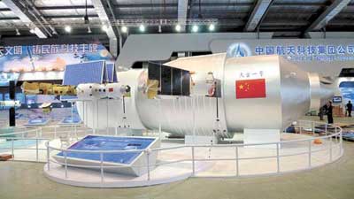 載人航天工程二期和三期任務(wù)。展廳中,最引人注目的莫過(guò)于天宮一號目標飛行器1:1的模型及未來(lái)空間站模型。它們向觀(guān)眾形象地描摹了我國載人航天工程二期和三期的圖景。